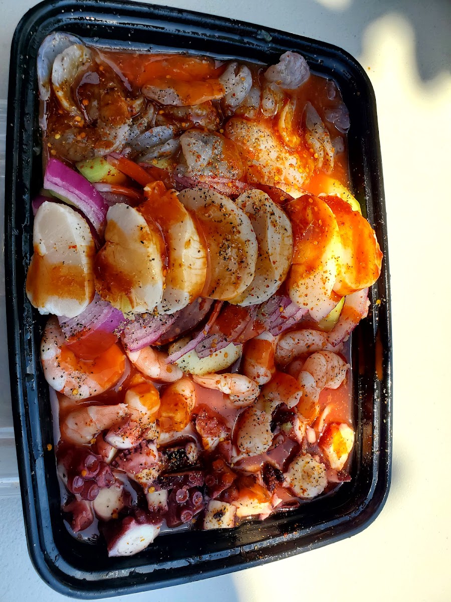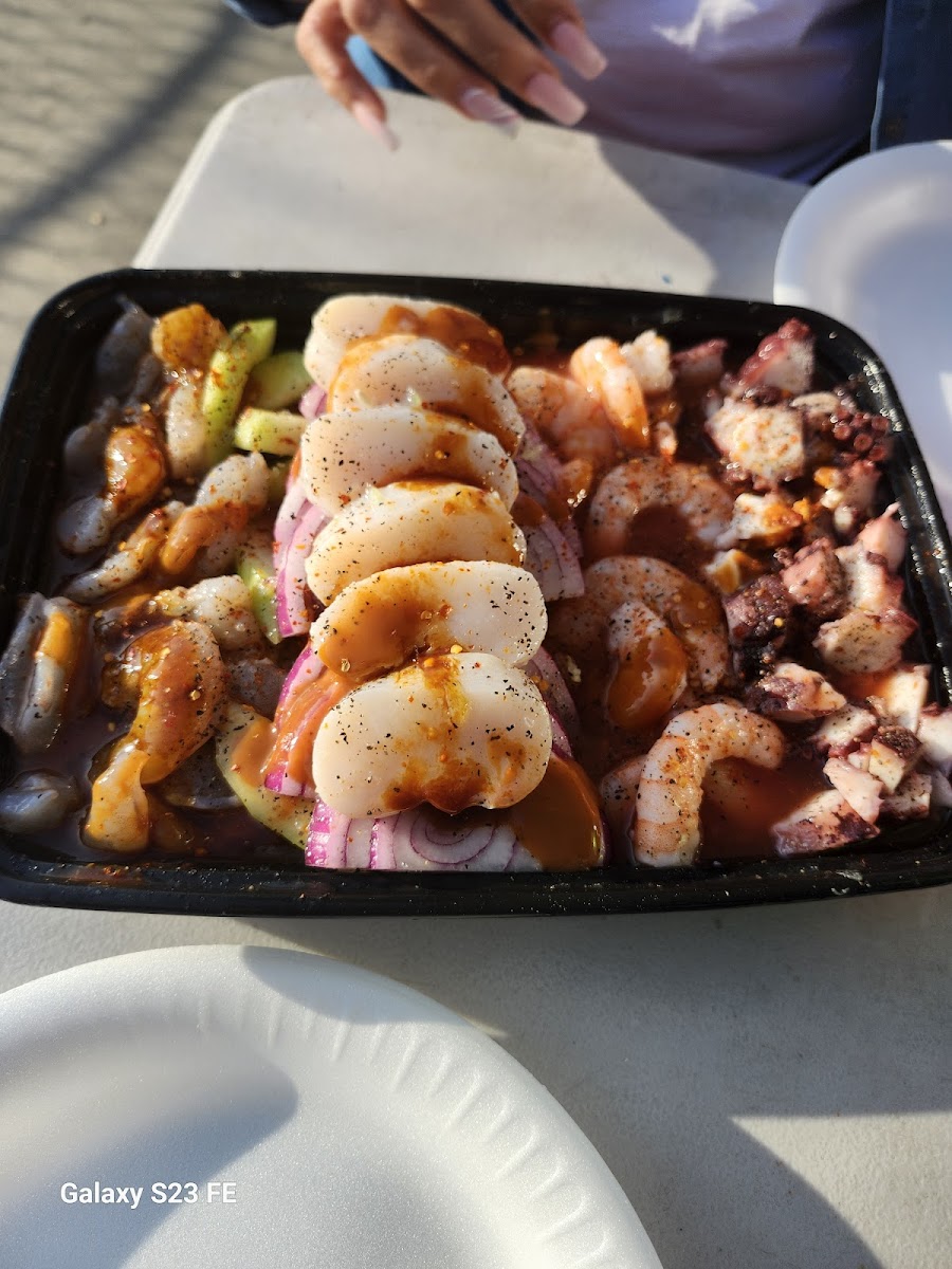 The menu focuses heavily on seafood-forward comfort food, and everything feels prepared with care and intention. One of the standout highlights is the Charola Con Pulpo Y Tuna, a dish that balances freshness with deep, savory flavor. The octopus is tender, the tuna clean and vibrant, and together they create a plate that feels generous without being overwhelming. It’s the kind of dish that makes you slow down and really enjoy each bite.